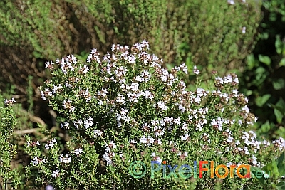 10 (20)cm, Ibiza Thyme is a perennial subspecies with upright hold, short woody stems with white to pale rose flowers above strongly aromatic, mint and lime fragrant, linear, greyish-green leaves. It is native of dryish, rocky spots in upper regions on the island of Ibiza (Balearics, Spain). For any rich, well drained soil in a sunny and protected spot. Ideal for the rock garden. VI-VIII. |